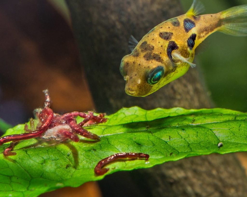 Allerdings werden sie kleinere Kreaturen fressen, die sie im Becken finden. Dazu gehören Schnecken, kleine Fische und Garnelen.